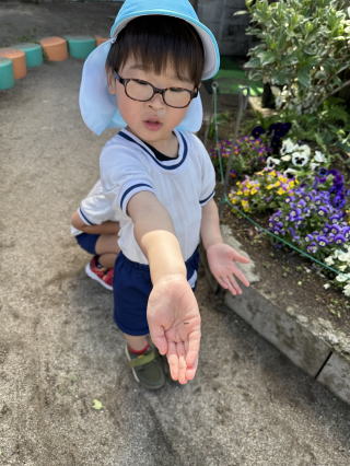 「園長先生!この虫なんですか?」園児たちが大騒ぎをしながら園長先生の所へやってきます。青虫、ダンゴムシ、ミミズなどなど。色んな昆虫を探し出してきます。夏が近づくと園長先生も大忙しです(笑)
