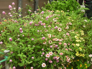 花は季節に合わせて、パンジー、ビオラ、チューリップ、金魚草、百日草、千日紅、ひまわり、アサガオ、マリーゴールドなどなど。珍しい花もありますよ。